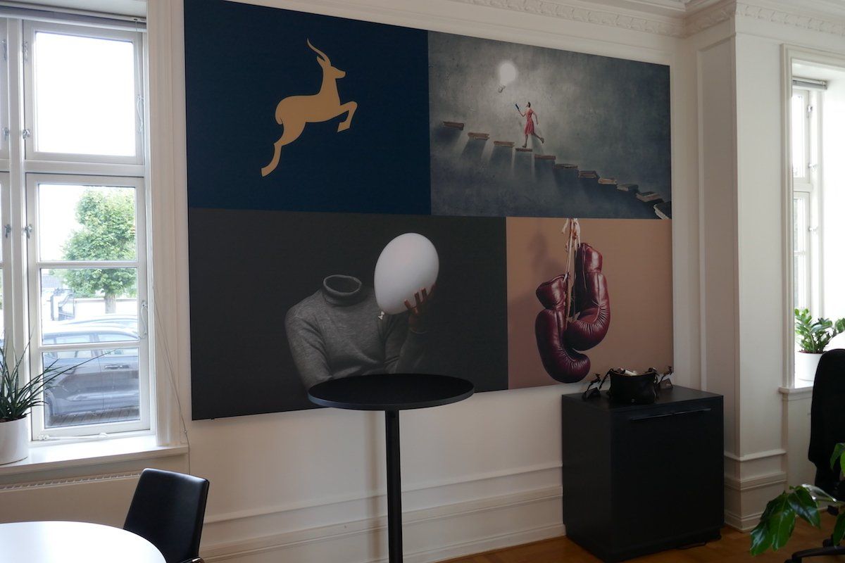 "Während des gesamten Prozesses erhielten wir eine sehr gute Anleitung zur Behebung akustischer Probleme im Hinblick auf das Haus und den Raum. Gleichzeitig war es uns sehr wichtig, dass wir die Designs, die wir gefunden haben, selbst auswählen und hochladen konnten. Jetzt sitzen wir umgeben von wunderschönen Bildern in Räumen und Besprechungsräumen, in denen wir miteinander reden können, ohne dass es widerhallt.“ Michael, Marketing Manager.