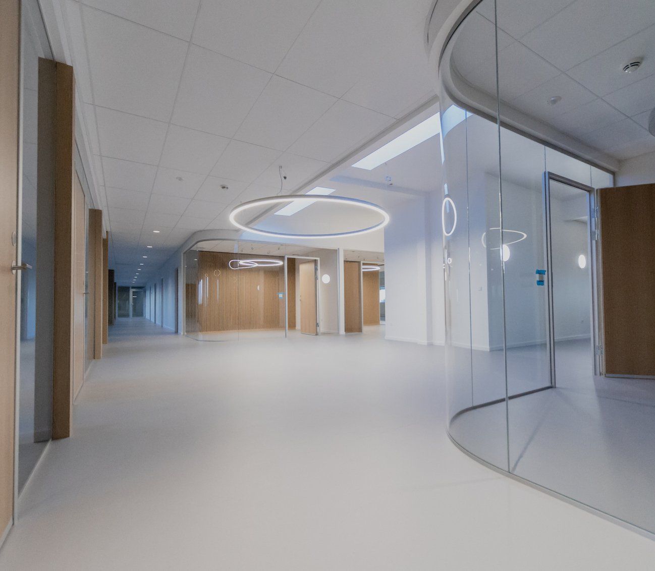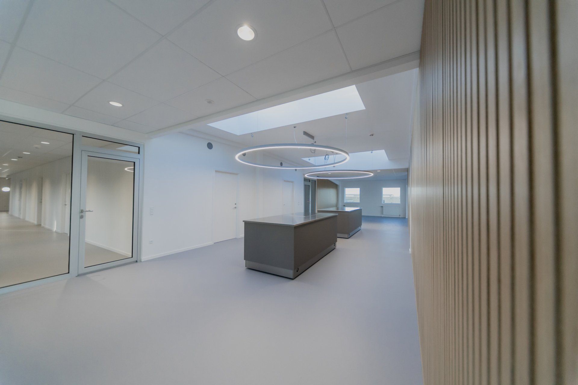 Get a modern look on the ceiling or wall in the spacious office or kitchen/living room and improve the acoustics in the room at the same time. Wooden slat panels are easy to install and are robust and beautiful to look at.